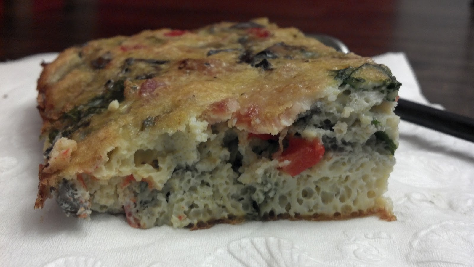 - Variation 2: From the original recipe take out all the veggies except spinach. Add in broccoli and kale. Add 1 package of bacon, as stated above. Precook the bacon. Here's the difference in this one: I did not saute the veggies. I threw then in the egg mix and let them bake since they're more fragile. I really, really, really like this variation. The quiche comes out beautifully and the veggies look crisp and fresh.